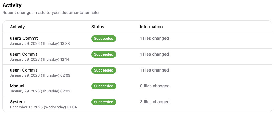 | Auto | Automatic deployment triggered by GitHub push. Committer name is displayed |